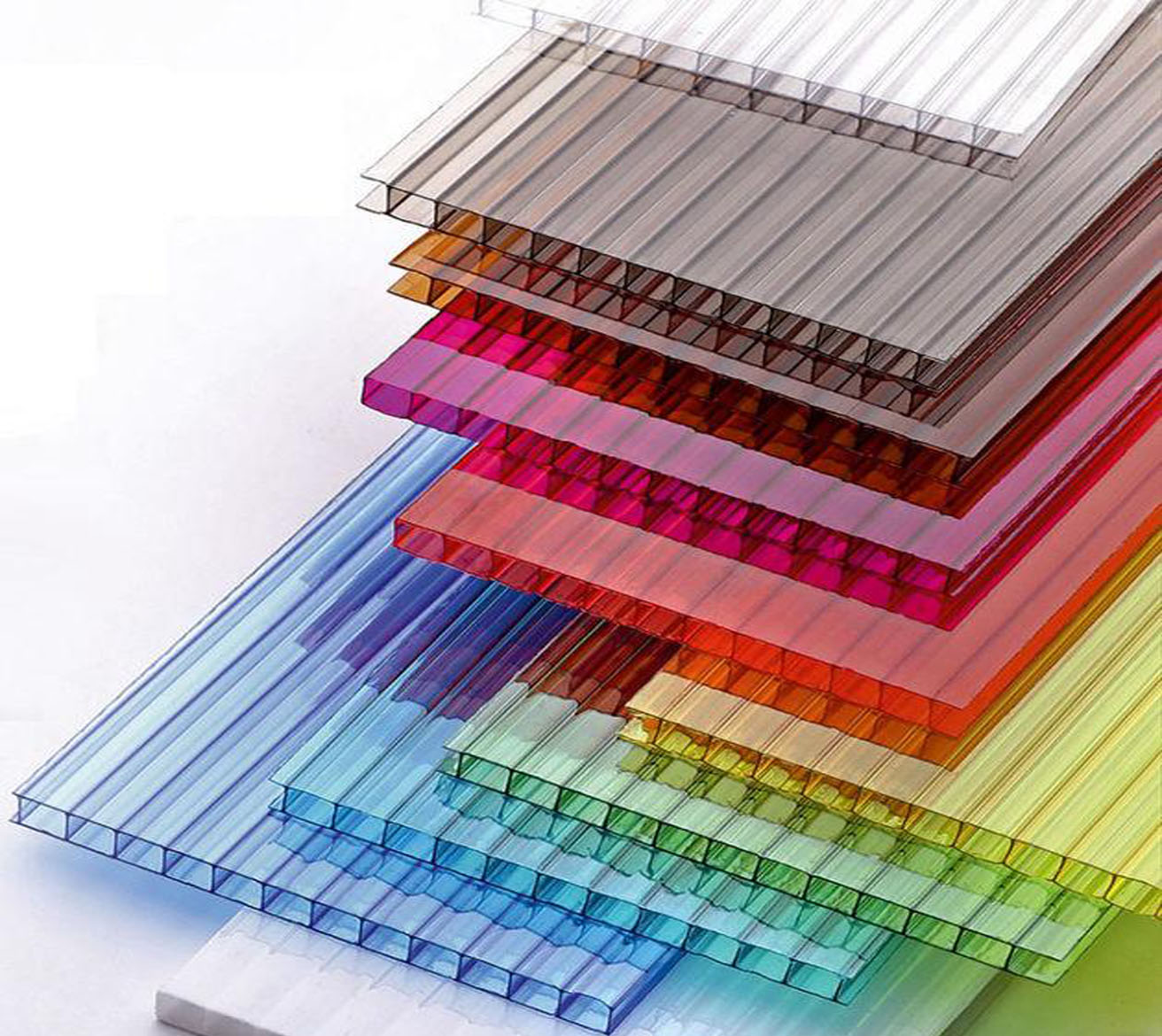 Широкая номенклатура сотового поликарбоната различной толщины, прозрачного или окрашенного. Большая популярность данного материала обусловлена высокими техническими характеристиками и надёжностью